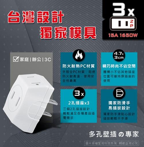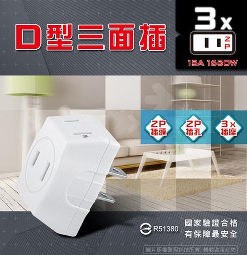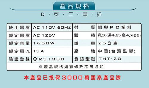 ◎◆獨家防滑手,易插拔設計|◎◆BSMI國家級檢驗合格|品名:【Dr.AV】D型三面插(TNT-22)